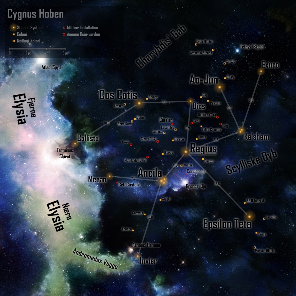 6,3 milliarder borgere - U'tani, Amnoni og Mennesker, 11 stjernesystemer regeret af Quorumet, forenet under det Hellige Imperat.